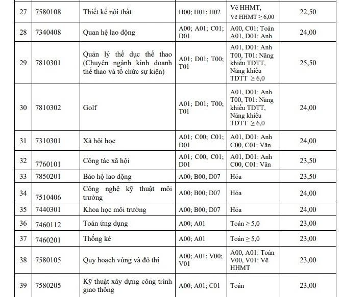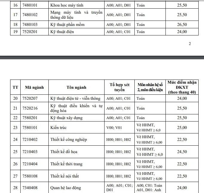 Theo nhà trường, mức điểm này là tổng điểm ba môn theo tổ hợp, cộng với điểm ưu tiên đối tượng/khu vực, trên thang điểm 40 và đã được làm tròn đến 2 chữ số thập phân.