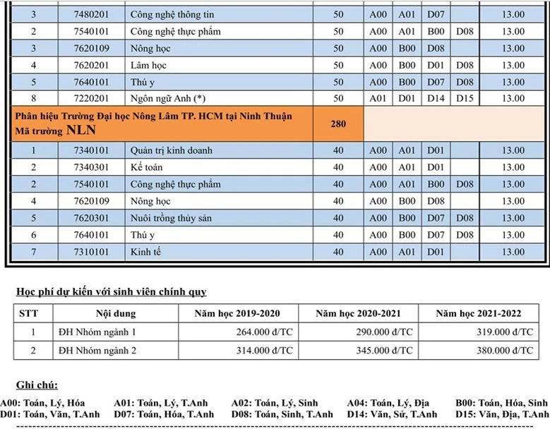 Đó là thông tin mới nhất từ Trường ĐH Nông lâm TP.HCM trong công bố đến thí sinh ngưỡng điểm sàn xét tuyển vào trường theo tổ hợp điểm thi THPT Quốc gia năm nay.