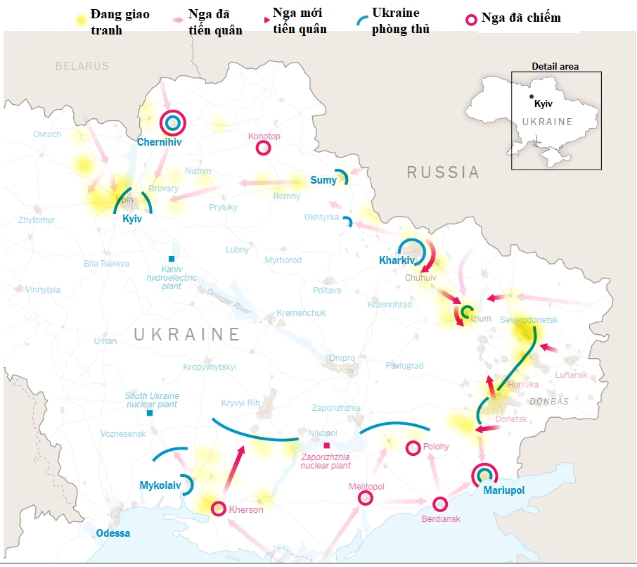 Bản đồ chiến sự ở Ukraine cập nhật ngày 22-3. Ảnh: THE NEW YORK TIMES