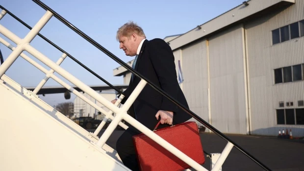 Thủ tướng Anh Boris Johnson lên đường sang châu Âu họp khẩn với NATO hôm 24-3. Ảnh: AP