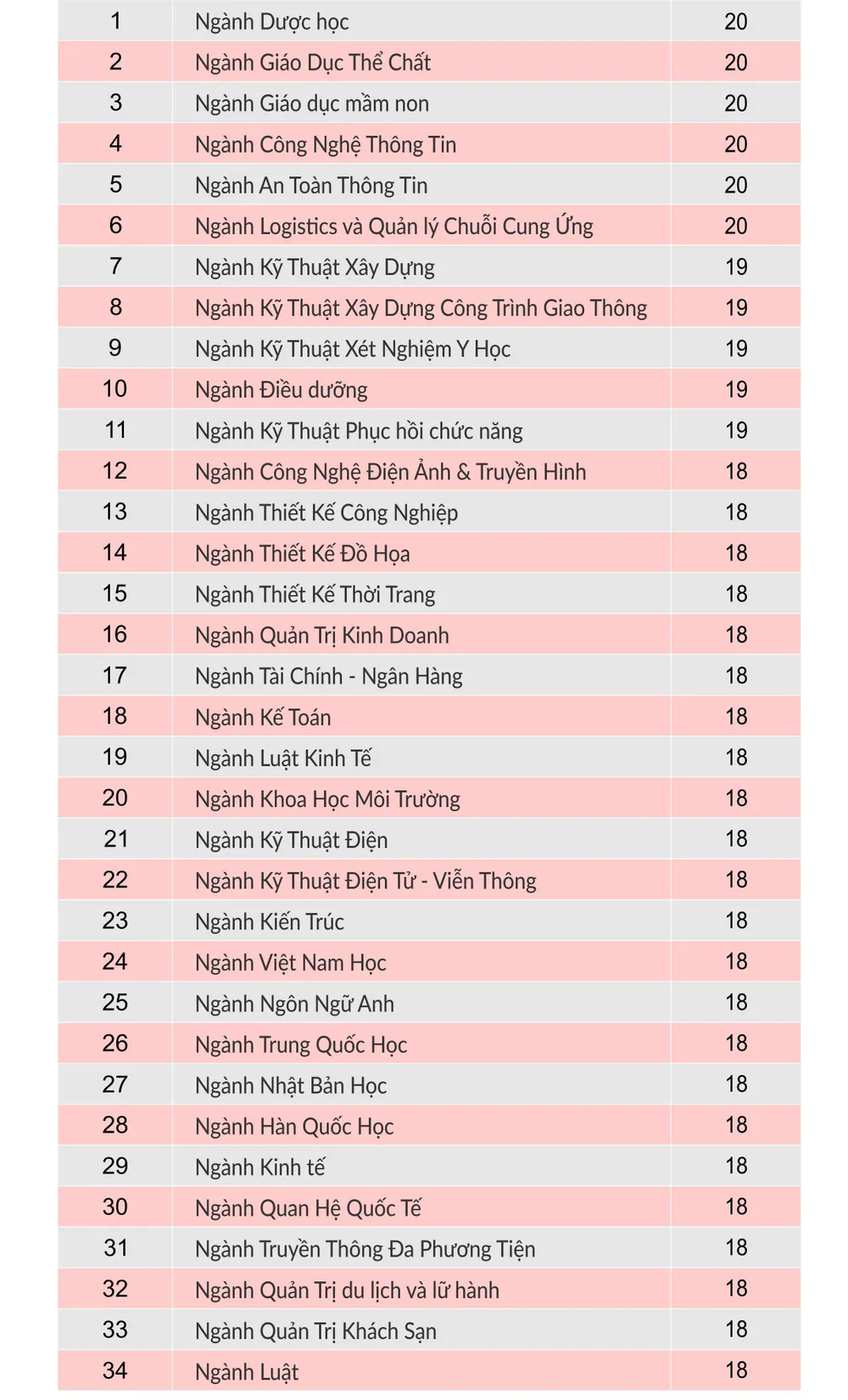 Trong đó, 6 ngành có điểm trúng tuyển cao nhất là Dược học, Giáo dục thể chất, Giáo dục mầm non, Công nghệ thông tin, An toàn thông tin và ngành Logistics và quản lý chuỗi cung ứng.
