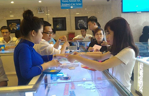 Nhiều người đang mua, bán vàng. Ảnh: YÊN TRANG