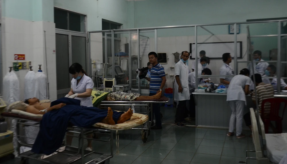 Các nạn nhân bị thương đang được cấp cứu tại BV Đa khoa Đắk Nông. Ảnh: ĐẠI DŨNG
