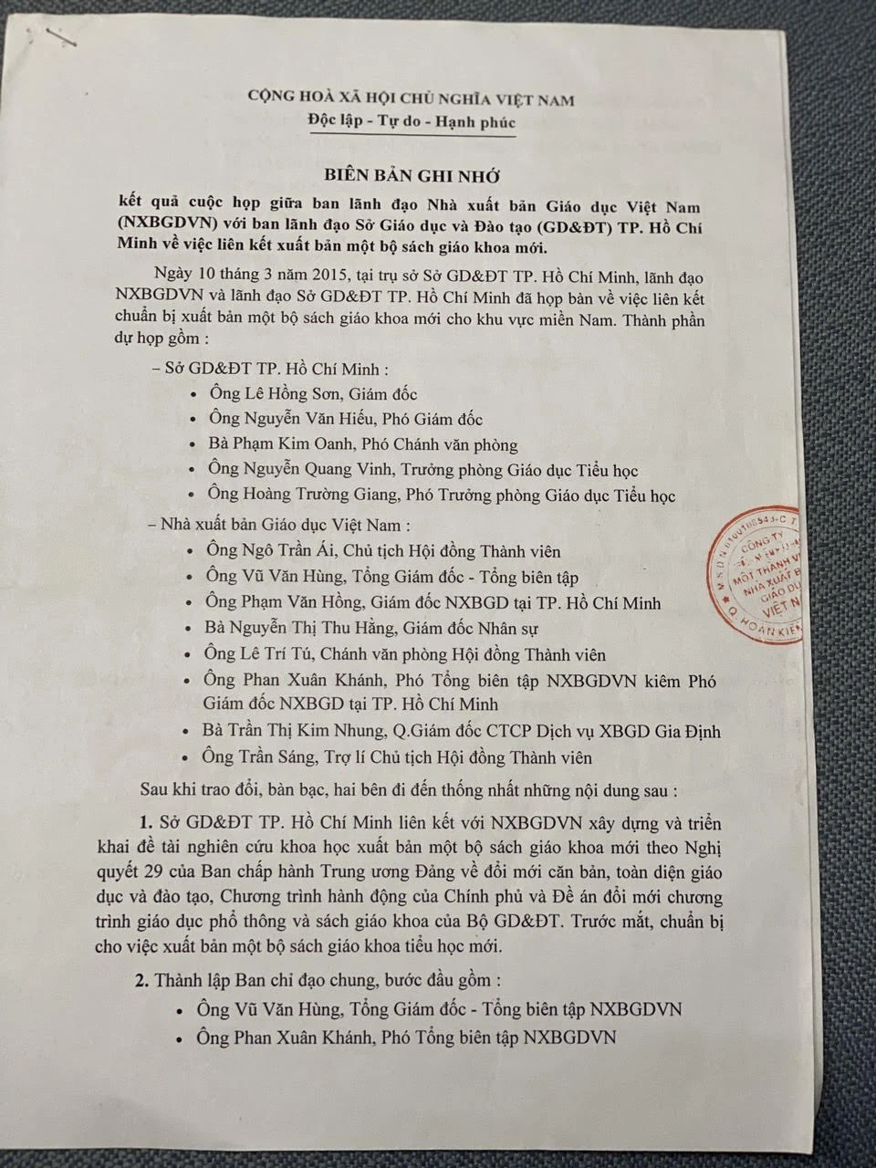 Ông Tùng cho biết năm 2015, thực hiện Nghị quyết 88/2014/QH13 của Quốc hội về đổi mới chương trình, sách giáo khoa (SGK) giáo dục phổ thông, NXB Giáo dục Việt Nam đã được Sở GD&ĐT TP.HCM phối hợp “xây dựng và triển khai đề tài nghiên cứu khoa học xuất bản một bộ SGK mới theo Nghị quyết 29 của Ban chấp hành Trung ương Đảng về đổi mới căn bản toàn diện giáo dục và đào tạo, chương trình hành động của Chính phủ và đề án đổi mới chương trình giáo dục phổ thông và SGK của Bộ GD&ĐT”.