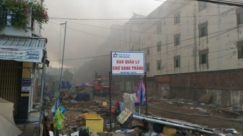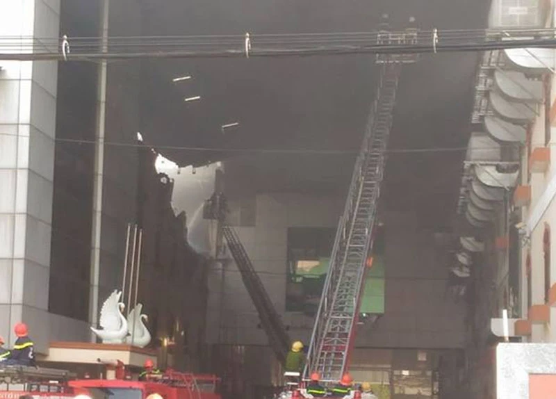 Lửa khói đang bốc lên từ tòa nhà