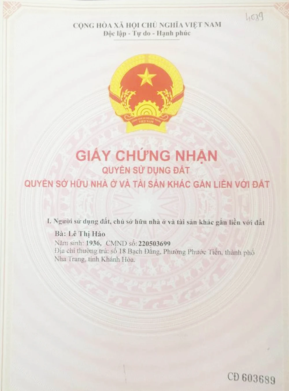Ngày 20-8, ông Nguyễn Hoàng Trung (37 tuổi, cán bộ Phòng Cảnh sát thi hành án hình sự và hỗ trợ tư pháp Công an tỉnh Khánh Hòa) đã giao giấy chứng nhận quyền sử dụng đất - quyền sở hữu nhà ở và tài sản khác gắn liền với đất (gọi tắt là GCN) cho luật sư Nguyễn Hồng Hà, Phó Chủ nhiệm Đoàn Luật sư tỉnh Khánh Hòa.