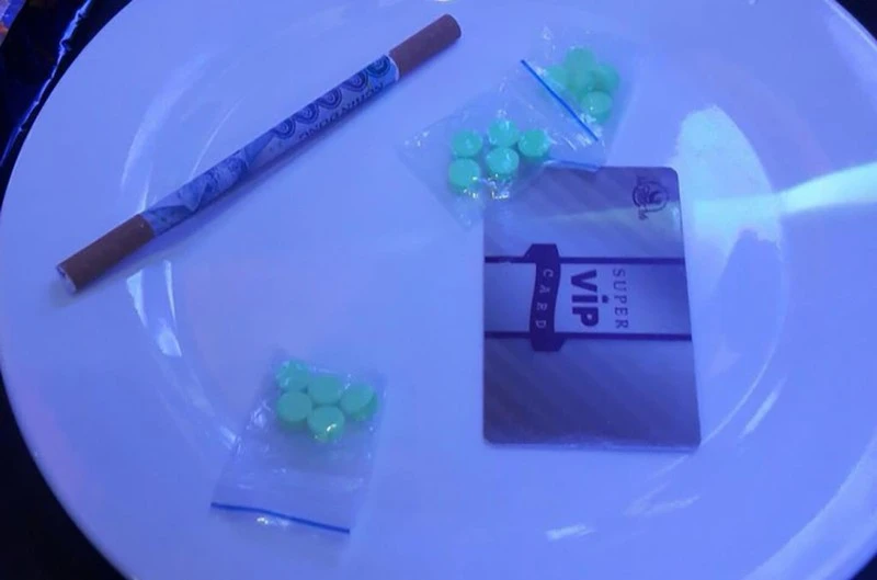 Tại năm phòng, công an phát hiện nhiều người sử dụng ma túy. Khám xét tủ cá nhân của hai nữ tiếp viên là Trần Thị Quỳnh (26 tuổi, quê Lâm Đồng) và Trần Thị Mộng Đang (18 tuổi, quê Cần Thơ), tổ công tác phát hiện có thuốc lắc.