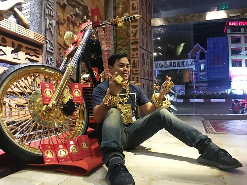 Tất cả số vàng mà Phúc khoe đều là giả; những chiếc xe người này mạ vàng cũng không có giấy tờ lưu hành. Ảnh: NT