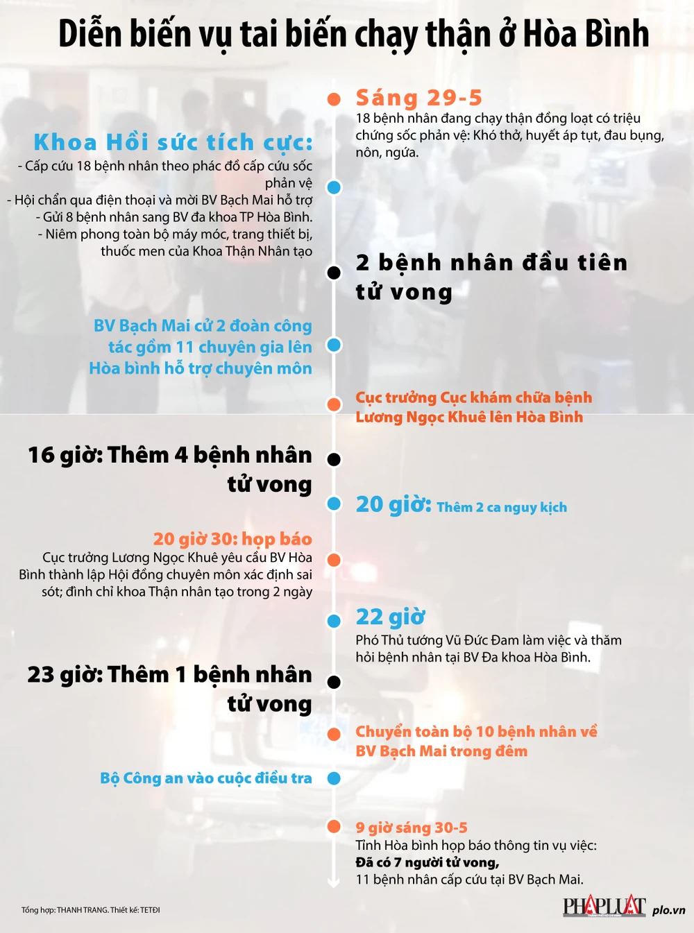(PLO)- Ngày 29-5, tại Hòa Bình đã xảy ra một vụ tai biến y khoa hết sức nghiêm trọng, 18 bệnh nhân suy thận mãn sốc khi đang được chạy thận nhân tạo, 7 người tử vong.