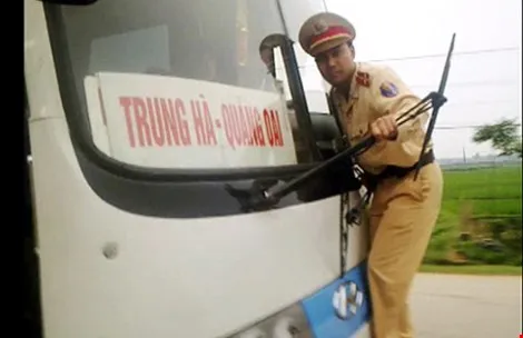 Ngày 11-5-2009, một CSGT ra hiệu dừng xe một chiếc xe chạy quá tốc độ cho phép khi đến trạm soát vé Phủ Lý (Hà Nam). Tuy nhiên tài xế vẫn cho xe bỏ chạy. Anh CSGT đã phải nhảy lên nắp capô xe, một tay bám chặt vào xe, một tay huơ gậy yêu cầu dừng xe.…