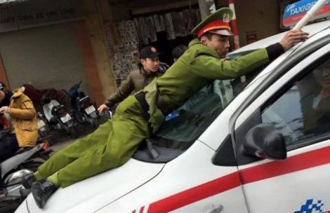 Ngày 5-2-2015, một CSGT ra chặn đầu, ra hiệu lệnh dừng một xe taxi khi chiếc xe này chạy vào đường ngược chiều tại Hà Nội. Tuy nhiên, chiếc xe đã không dừng lại, buộc anh này phải nhảy lên nắp capô.