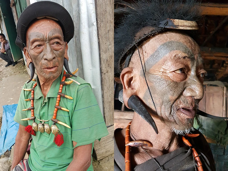 Nhờ ông chủ nhà phiên dịch, họ kể những hình xăm trên mặt như vầy có từ khoảng năm họ 20 tuổi. Thông thường họ phải mất một đến hai ngày để hoàn thành hình xăm. Và thợ xăm luôn là một phụ nữ. Người hướng dẫn cho biết những cụ già này đã lấy từ một đến hơn 10 đầu kẻ thù. Riêng ông cụ cha của ông chủ nhà tôi đang ở thì ngày xưa đã mang về làng đến bốn đầu người!