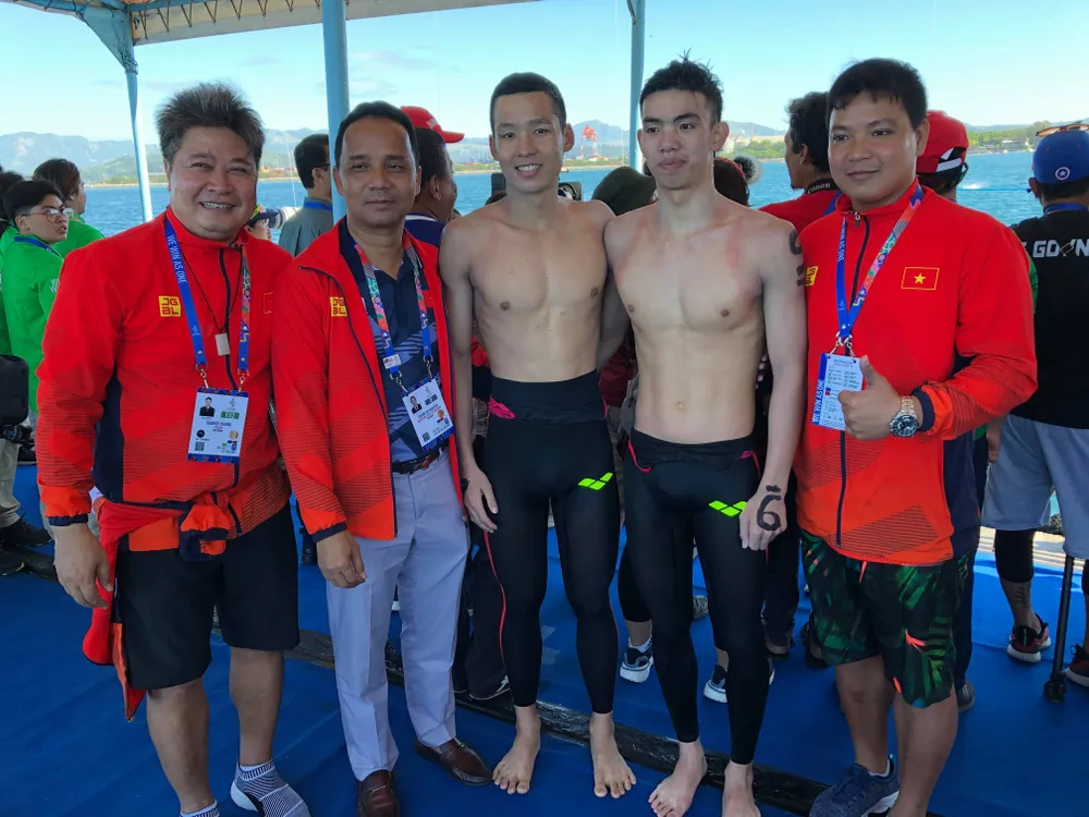 Bộ đôi Trần Tấn Tiều và Nguyễn Huy Hoàng cũng lấy hai vị trí đầu nội dung bơi đường dài cự ly 10 km.