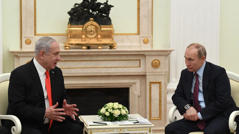 Tổng thống Nga Vladimir Putin (phải) gặp Thủ tướng Israel Benjamin Netanyahu (trái) ở Moscow ngày 30-1. Ảnh: AL MONITOR