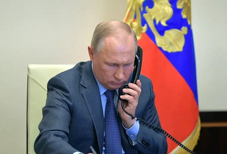 Tổng thống Nga Vladimir Putin trao đổi công việc qua điện thoại với Thống đốc vùng Kaliningrad. Ảnh: SPUTNIK