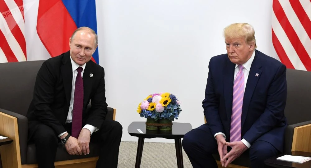 Tổng thống Nga Vladimir Putin (trái) và người đồng cấp Mỹ Donald Trump hội đàm tại Nhật Bản hồi tháng 6. Ảnh: SPUTNIK