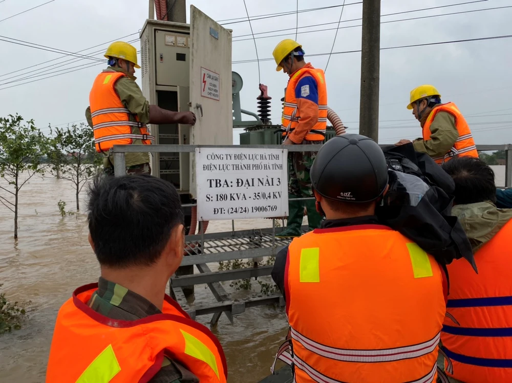 Sau khi lượng mưa giảm, nước có chiều hướng rút, Công ty Điện lực Hà Tĩnh (PC Hà Tĩnh), thuộc Tổng công ty Điện lực miền Bắc (EVNNPC) đã khẩn trương, huy động toàn bộ lực lượng kiểm tra các trạm biến áp, đường dây, khắc phục các tồn tại trước khi đóng điện.