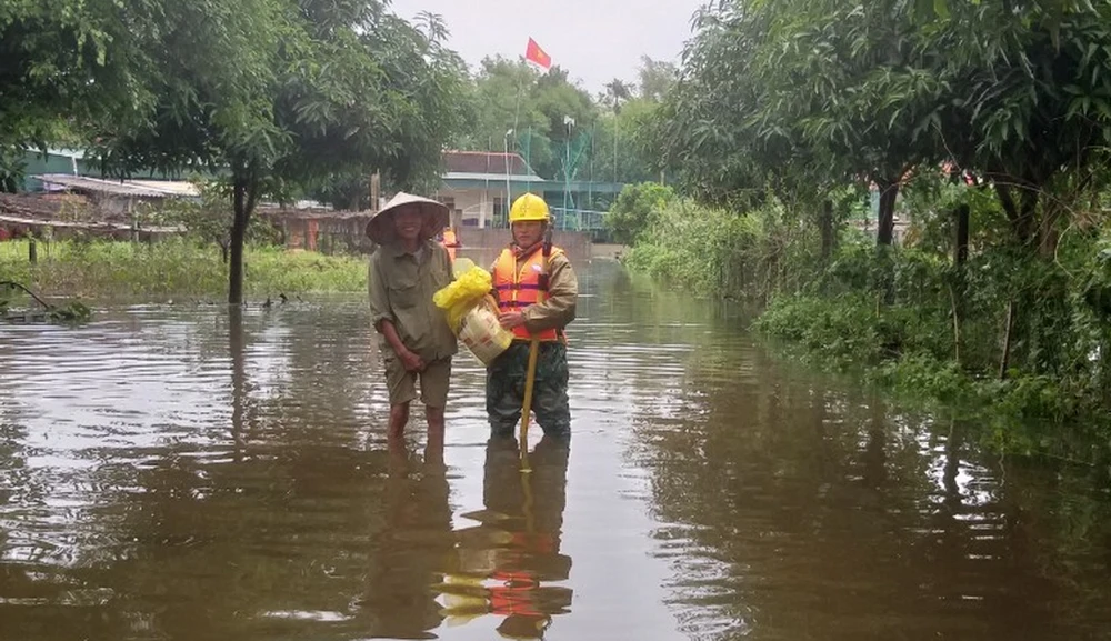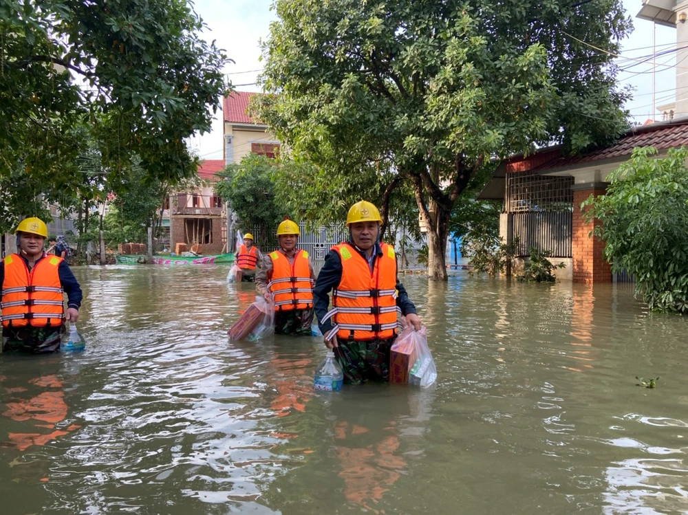Chùm ảnh CBNV của PC Hà Tĩnh tham gia khắc phục thiệt hai do lũ lụt và chia sẻ khó khăn với người dân trên địa bàn: