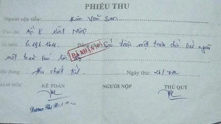 Biên lai thu tiền đấu nối điện với giá “cắt cổ”. Ảnh: N.ĐỨC