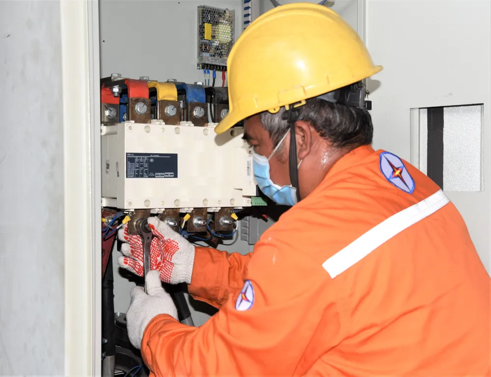 Nhân viên EVNHCMC kiểm tra, bảo trì hệ thống điện trước mùa nắng nóng 2022. Ảnh: HT.