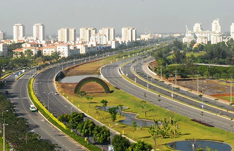 Đại lộ Nguyễn Văn Linh, xương sống của khu đô thị Phú Mỹ Hưng ngày nay. Ảnh: hữu luận