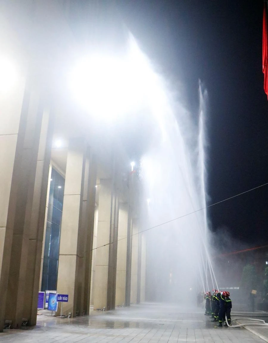 Theo phương án, tại phòng làm việc ở tầng hai tòa nhà Trung tâm hành chính tỉnh bất ngờ bốc cháy với diện tích khoảng hơn 100m2. Nguyên nhân của đám cháy được xác định là do sự cố chập điện.