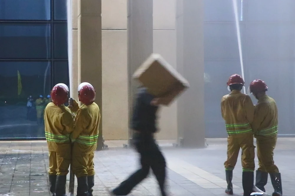 Diễn tập chữa cháy, cứu người tại Trung tâm hành chính tỉnh Bình Dương