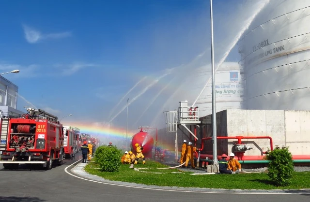 Buổi diễn tập với tình huống giả định, trong quá trình nhập LPG lạnh từ tàu ở cầu cảng số 1 vào bồn TK-0801 của Kho cảng PV Gas Vũng Tàu thì trời đột ngột có dông và bất ngờ sét đánh trực tiếp vào đỉnh bồn và làm vỡ thiết bị đo mức LZT-0802. Hơi LPG trong bồn thoát ra ngoài qua chỗ vỡ bắt cháy tạo thành ngọn lửa cao đến 2 mét trên đỉnh bồn.