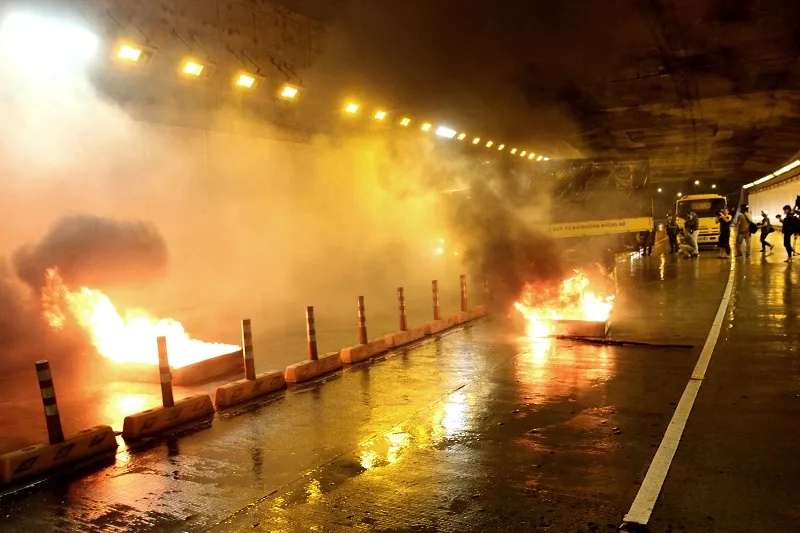 Từ 21 giờ, các phương tiện bị cấm lưu thông qua đường hầm để phục vụ cho diễn tập phương án chữa cháy và tìm kiếm cứu nạn, cứu hộ.