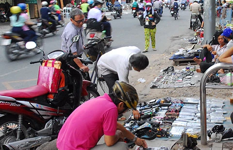 Đồ điện tử đã qua sử dụng bày bán trên đường Nguyễn Kiệm, quận Gò Vấp. (Ảnh chụp chiều 13-10) Ảnh: HTD