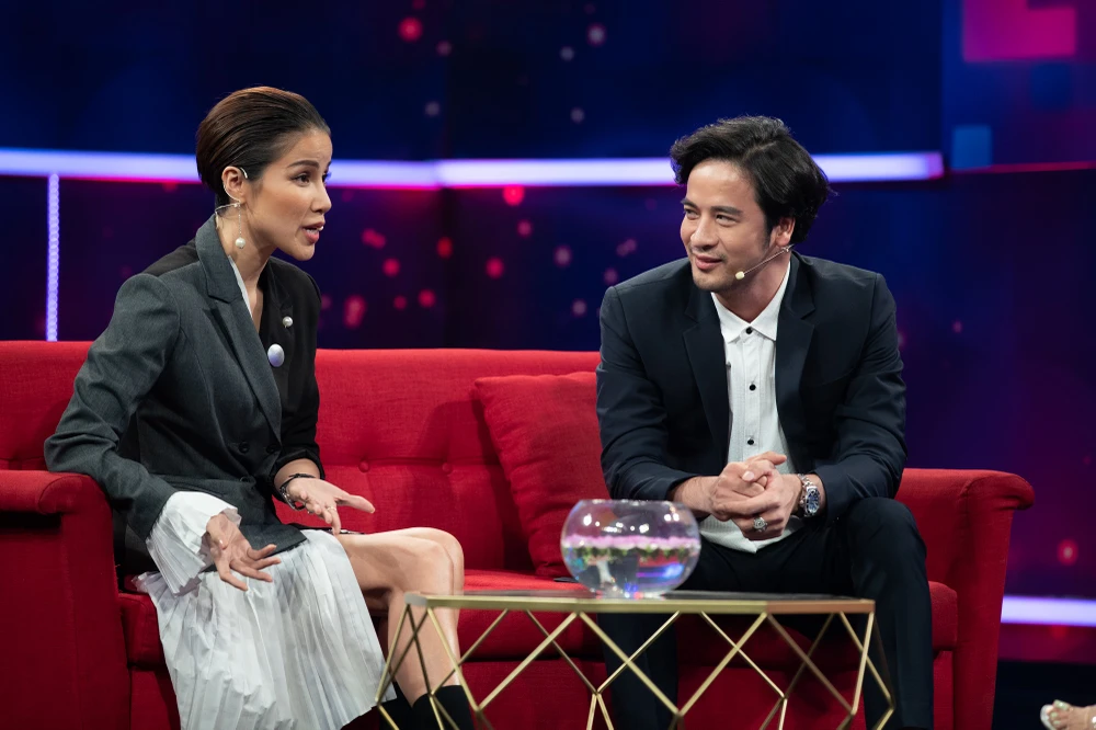 Bảo Trúc và Đoàn Thanh Tài đều đã thẳng thắn chia sẻ về mối quan hệ của họ tại chương trình. Ảnh: SEN VÀNG