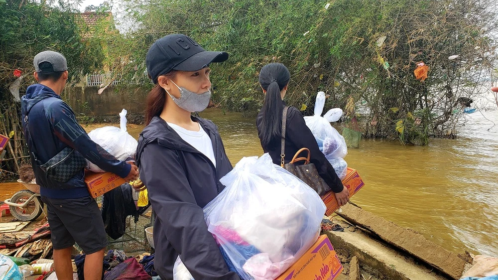 Đây là địa phương chịu thiệt hại nặng nề do mưa lũ trong những ngày qua. Chứng khiến nỗi cơ cực của bà con, nhiều nghệ sĩ không khỏi xúc động. Ngoài những suất quà chung, nhiều nghệ sĩ còn gửi biếu bà con bằng tiền riêng cá nhân.