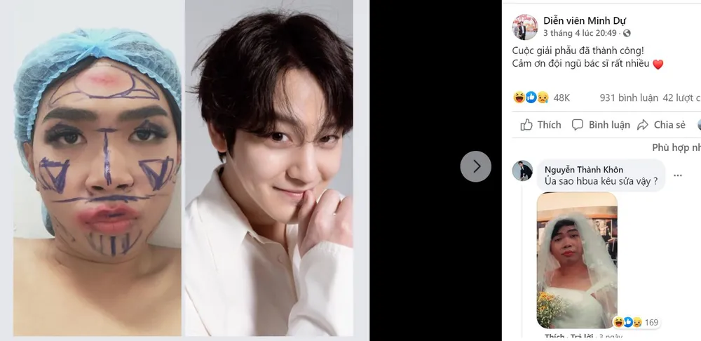Vừa nhắc đến vấn đề này, Minh Dự liền bật cười ha hả:“Không. Dự không phải muốn phẫu thuật. Dự chỉ là chia sẻ vài tấm hình mua vui thôi nhưng không ngờ quá trời người bình luận. Có người tưởng thật cũng bảo không thích Dự sửa gì hết mà chỉ thích vẻ ngoài trước đây của Dự thôi".