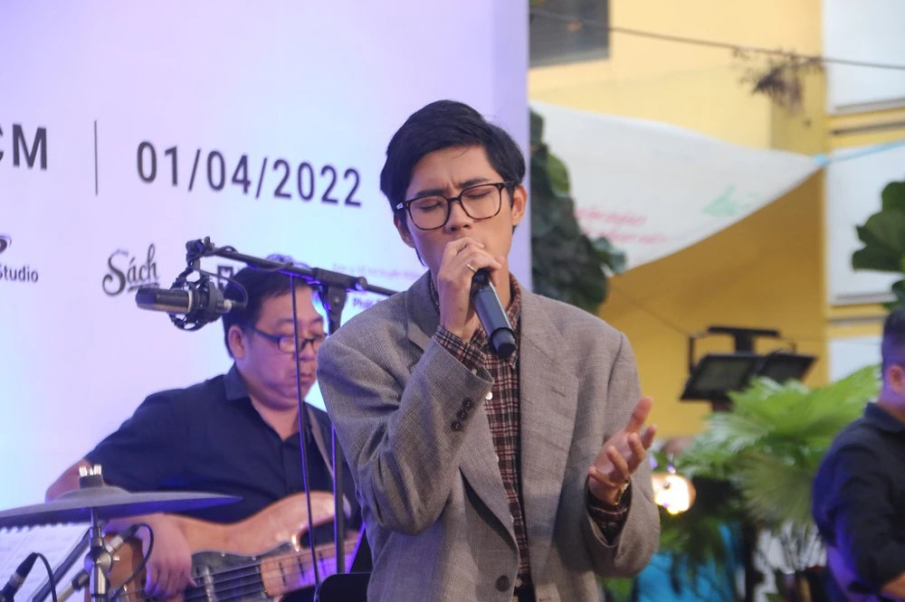 Ca sĩ Tấn Sơn hát Dấu chân địa đàng. Ảnh: THẢO PHƯƠNG