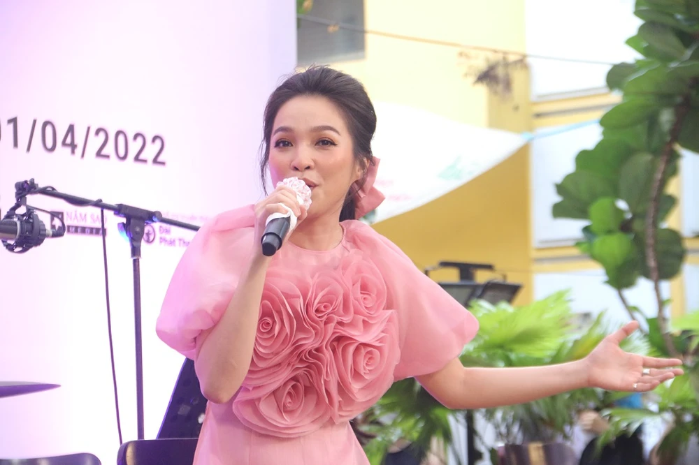 Ca sĩ Duyên Quỳnh với ca khúc 'Mưa hồng'. Ảnh: THẢO PHƯƠNG