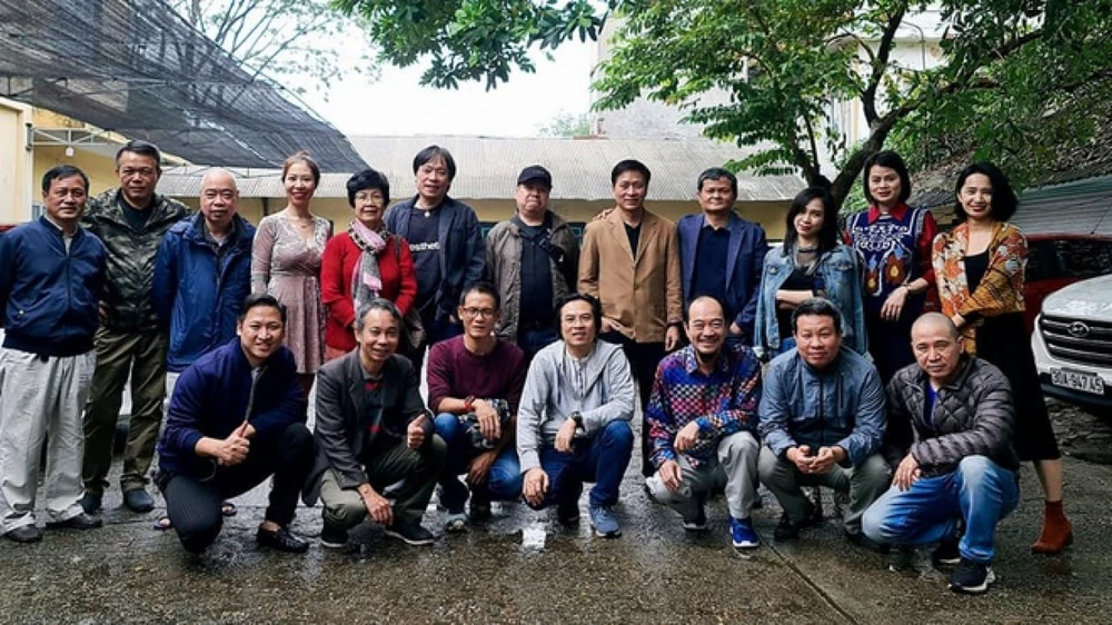 Diễn viên Quốc Tuấn chụp ảnh kỷ niệm chia tay tại Hãng phim truyện Việt Nam. Ảnh: QT