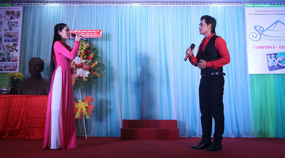 Tiết mục Nam Quốc Sơn Hà do hai nghệ sĩ Minh Hòa và Lý Trung Tính biểu diễn.
