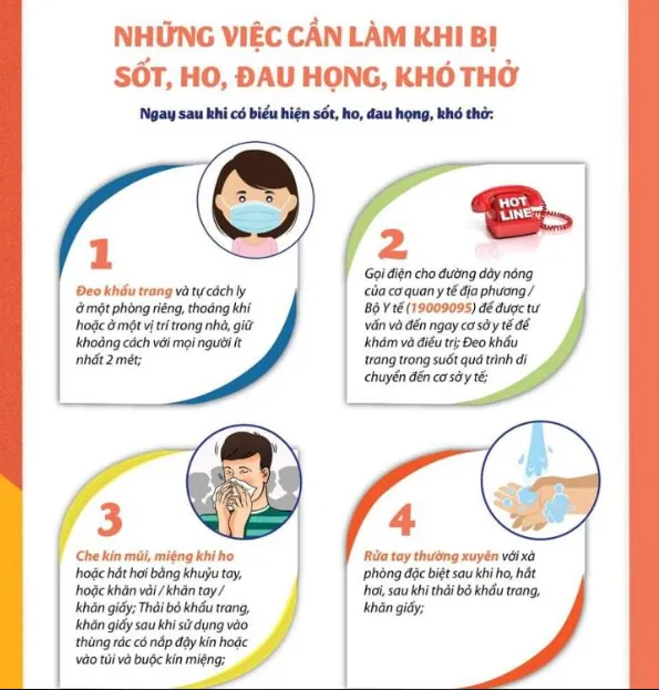 Những việc cần làm sau khi có biểu hiện sốt, ho, đau họng, khó thở: