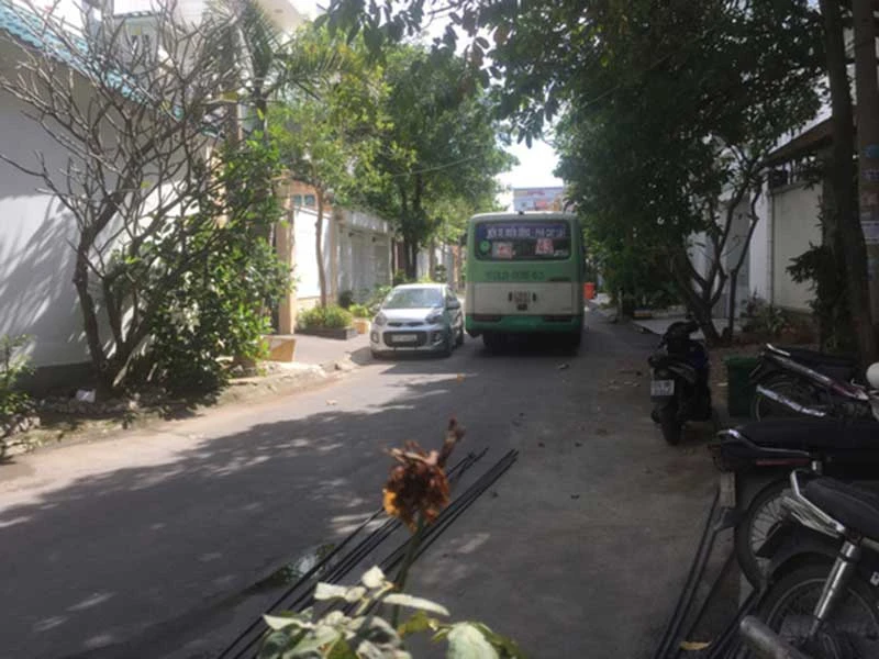 Xe buýt số 43 chạy vào đường dân sinh số 20 phường Bình An, quận 2. Ảnh: plo.vn