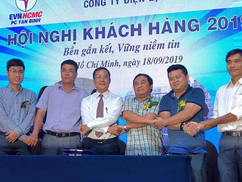 Lễ ký kết chương trình điều chỉnh phụ tải điện (DR) giữa Công ty Điện lực Tân Bình và khách hàng. Ảnh: HT