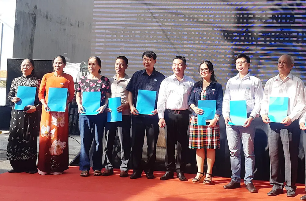 Người dân hẻm 123, đường Tân Thới Hiệp 14 được lãnh đạo quận trao giấy chứng nhận số nhà mới.