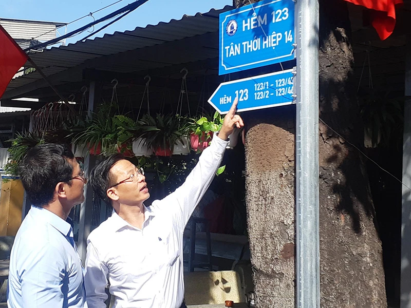 Thực hiện dự án điều chỉnh số nhà trên địa bàn phường Tân Thới Hiệp, UBND quận 12 triển khai thí điểm cấp số nhà cho hơn 25 nhà dân và đặt tên hẻm 123 cho đường Tân Thới Hiệp 14.