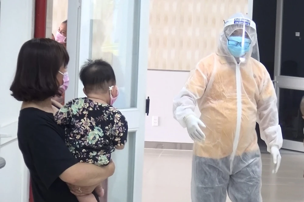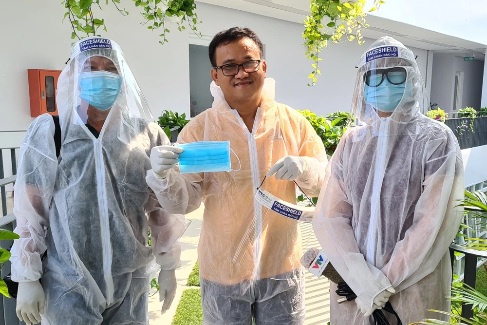 Ông Huỳnh Minh Chín, hỏi thăm những người từ ngước ngoài trở về, cách ly tập trung tại Trung tâm y tế Bàu Bàng. Ảnh: LÊ ÁNH