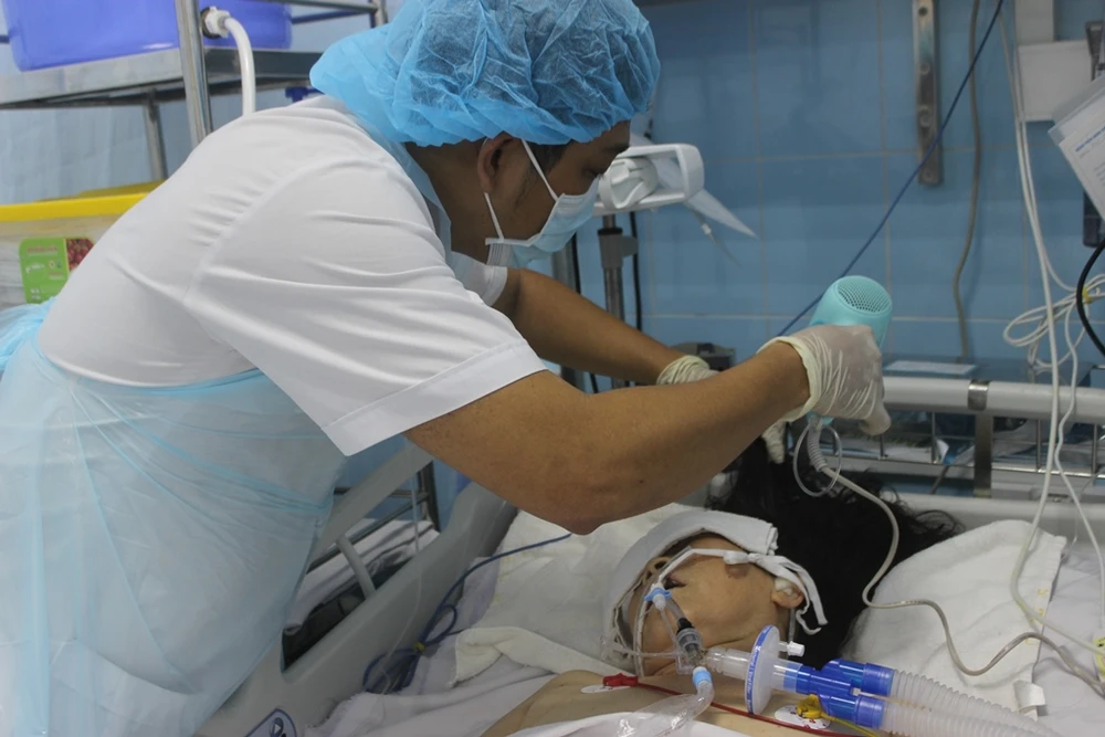 Chị Nguyễn Thị Bích Dung, điều dưỡng tại khoa, cho biết từ đầu năm đến nay, để phục vụ tốt hơn nhu cầu cần thiết của bệnh nhân, khoa đã triển khai thêm nhiều sáng kiến nhằm chăm sóc toàn diện cho người bệnh, người nhà không cần phải hỗ trợ như trước. Một trong những sáng kiến đó là tắm, gội đầu, chăm sóc răng miệng cho tất cả bệnh nhân tại khoa chứ không chỉ riêng bệnh nhân phải thở máy.