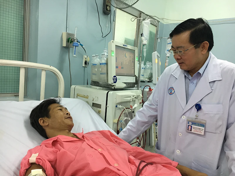 BS Nguyễn Minh Tuấn, Trưởng khoa Thận nhân tạo BV Chợ Rẫy, thăm hỏi một bệnh nhân lâu năm. Ảnh: HL