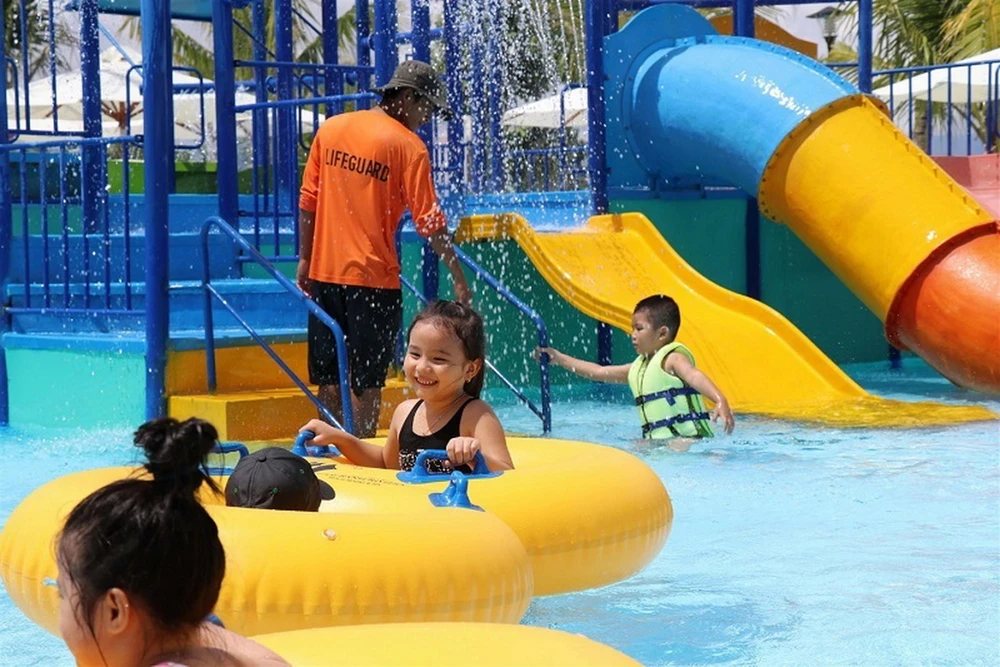 Trẻ em ăm ắp tiếng cười khi tham gia các trò chơi vận động vui nhộn trong khu Kids Island. Nhiều du khách nhí say mê vẽ tranh, tô màu, xem phim hoạt hình, nhảy cùng hoạt náo viên tại khu vui chơi trong nhà và ngoài trời.