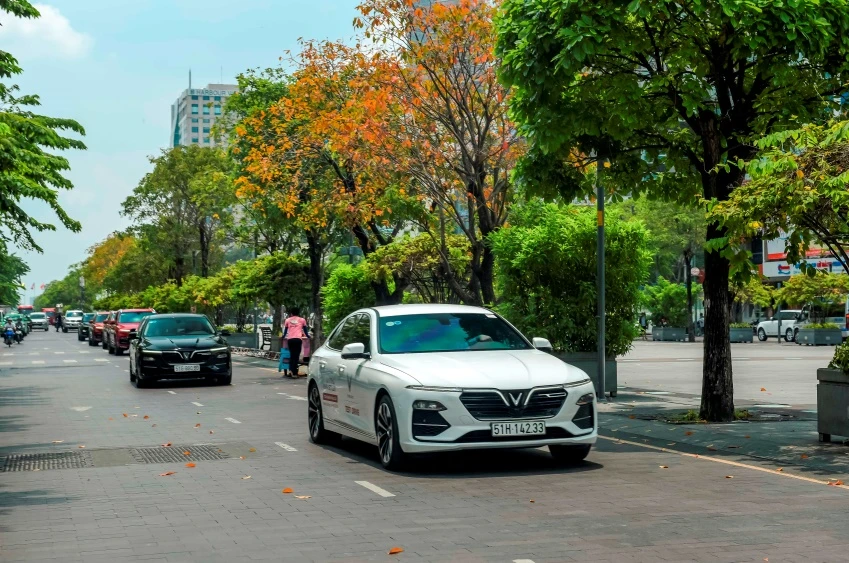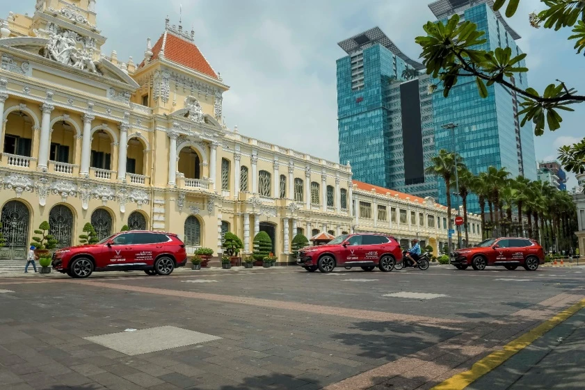 Xuất hiện tại tất cả điểm đến nổi tiếng và quen thuộc của TP.HCM như cầu Sài Gòn, nhà thờ Đức Bà, Nhà hát thành phố, hồ Con Rùa, Landmark 81…, đoàn xe diễu hành VinFast đi qua tất cả tuyến phố sầm uất của quận 1, quận 3, quận 5, quận Phú Nhuận ra đến quận 2, quận 9, quận Thủ Đức, quận Tân Phú…