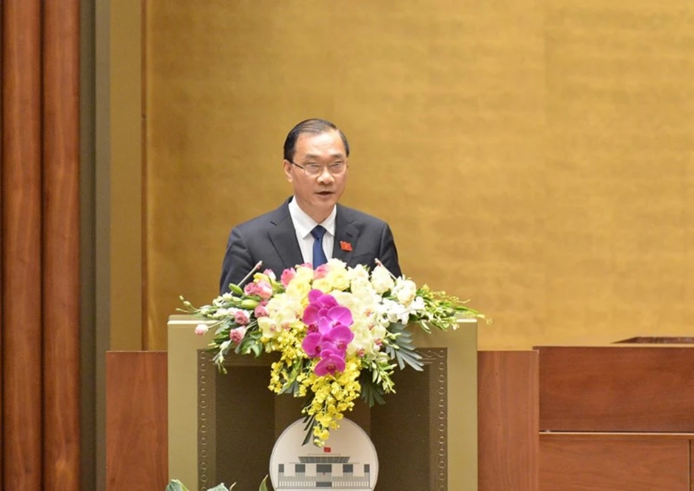 Chủ nhiệm Ủy ban Kinh tế Vũ Hồng Thanh trình bày báo cáo thẩm tra báo cáo của Chính phủ sáng 20-5. Ảnh: QH