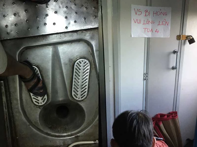 Không chỉ riêng tôi, hẳn ai đã từng đi tàu hỏa cũng phải thốt lên hai từ kinh hãi khi chứng kiến các phòng vệ sinh dơ bẩn, mùi xú uế nồng nặc khó chịu bốc lên. Vẫn biết rằng nhà vệ sinh công cộng sẽ khó lòng tránh được sự dơ bẩn, nhất lại là trong điều kiện trên những chuyến tàu lưu động, thế nhưng ngành đường sắt có thể khắc phục được bằng cách thường xuyên tẩy rửa. Như tôi biết, mỗi toa xe hành khách luôn có một nhân viên làm công tác bảo vệ quán xuyến, việc họ bỏ ra khoảng 10 phút/1-2 giờ hành trình để cọ rửa, dọn dẹp nhà vệ sinh sao cho thơm tho, sạch sẽ là không quá khó, không quá vất vả. Trên thực tế, gần như suốt cả hành trình của mỗi chuyến tàu dài tới cả hơn ba chục giờ đồng hồ, phòng vệ sinh không hề được dọn dẹp tẩy rửa, vì vậy mà nó bốc mùi và nhơ nhớp bẩn thỉu là tất yếu.