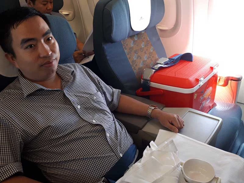 Trái tim được vận chuyển trên máy bay, vượt quãng đường hơn 700 km từ Hà Nội đến Huế. (Ảnh do BV cung cấp)